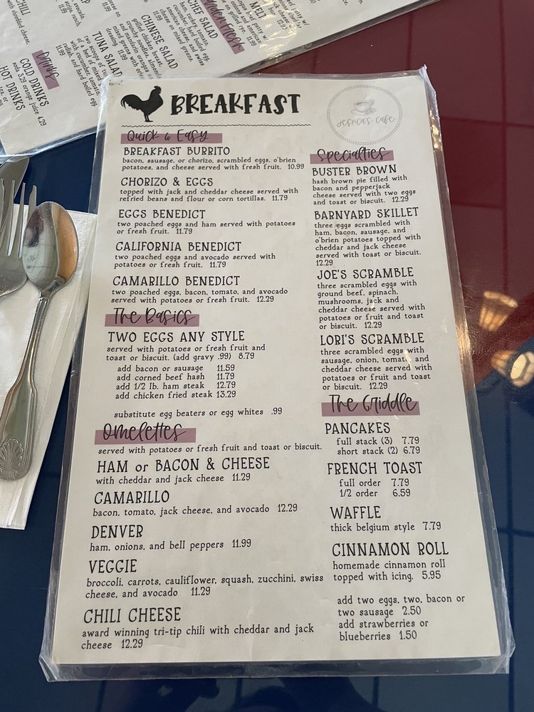Jessica's Cafe, a breakfast and brunch spot located in Camarillo, CA, offers a variety of options for both meat-eaters and vegetarians. From BBQ Chicken or TriTip Salad to classic Caesar Salad, their menu caters to different tastes. The soups, like Clam Chowder on Fridays, are also a hit with customers. The combination of salads and soups provides a balanced meal choice for those looking for something light yet satisfying. Customer reviews rave about the exceptional service and delicious food, with mentions of free cookies as a sweet touch. The ambiance is described as casual and welcoming, perfect for a relaxing meal. Jessica's Cafe seems to be a go-to spot for hearty breakfasts and flavorful lunches with generous portions and quick service, making it a must-visit for those in the area.